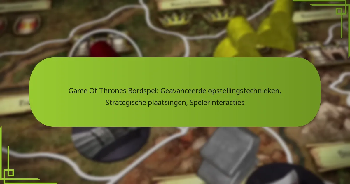 Geavanceerde opstellingstechnieken voor het bordspel Game of Thrones omvatten strategische arrangementen en plaatsingen die de gameplay en interacties tussen spelers verbeteren. Door de indeling van het bord, de plaatsingen van kaarten en het begrijpen van huis-specifieke voordelen te optimaliseren, kunnen spelers hun kansen op succes aanzienlijk verbeteren.