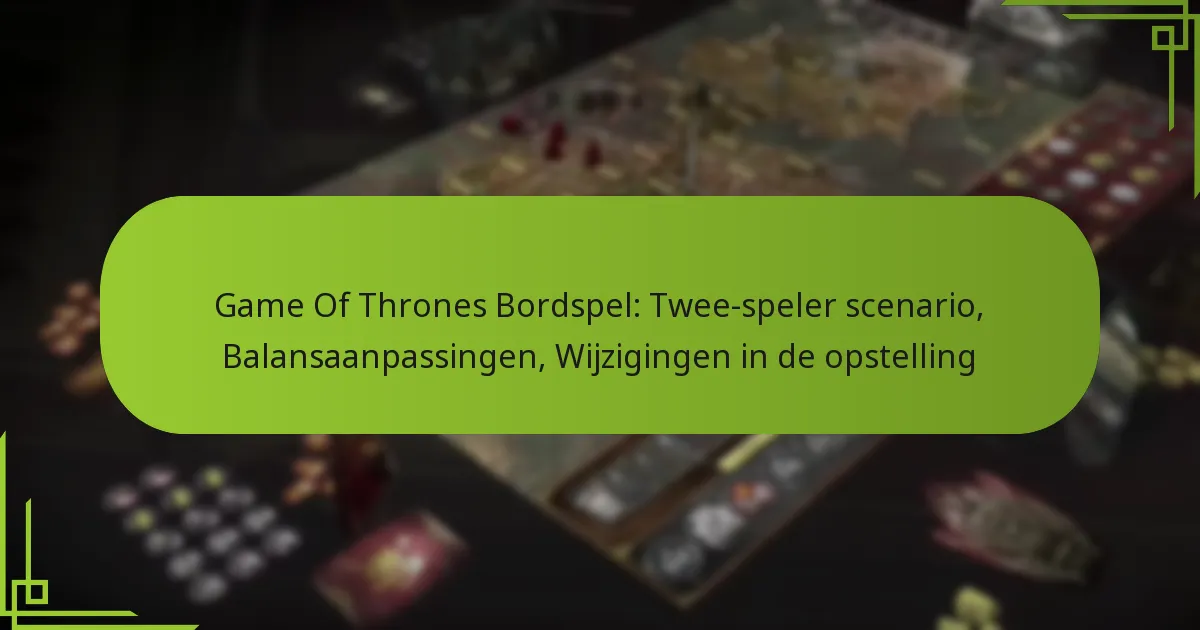 In een tweespelerscenario van het Game of Thrones Bordspel verbeteren verschillende belangrijke aanpassingen de balans en eerlijkheid. Deze wijzigingen omvatten veranderingen in de startposities, de verdeling van middelen, de gevechtsregels, de dynamiek van allianties en de overwinningseisen, allemaal gericht op het creëren van een competitieve en boeiende ervaring.